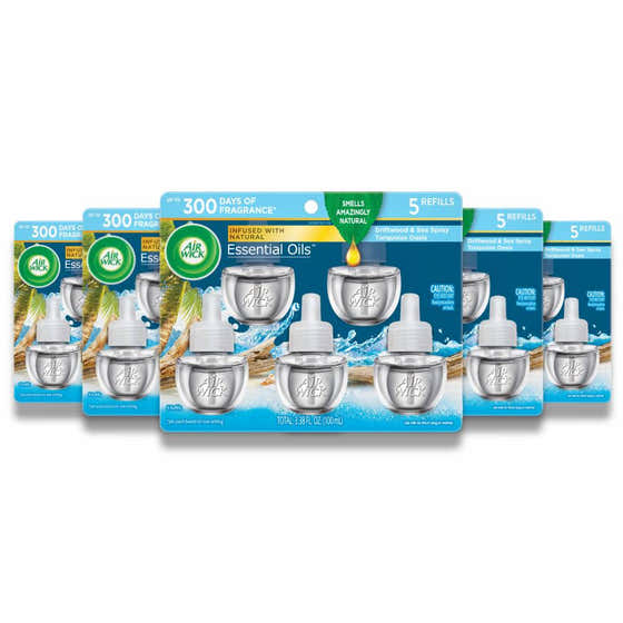 Air Wick - Scented Oil, Driftwood & Sea Spray, Essential Oils - 3.38 Oz - (5 Ct Each) - 5 Pack