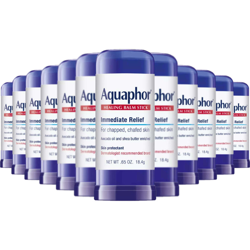 Offer your customers the ultimate on-the-go skin protection with this wholesale 12-pack of Aquaphor Healing Balm Stick. This portable, mess-free stick provides the trusted, dermatologist-recommended formula of Aquaphor in a convenient form. It glides on smoothly to soothe and protect dry, chapped, or irritated skin on the face, hands, and body. Its unscented, hypoallergenic formula is safe for all skin types, including sensitive skin. This bulk offering is perfect for pharmacies, convenience stores, and travel retail outlets.