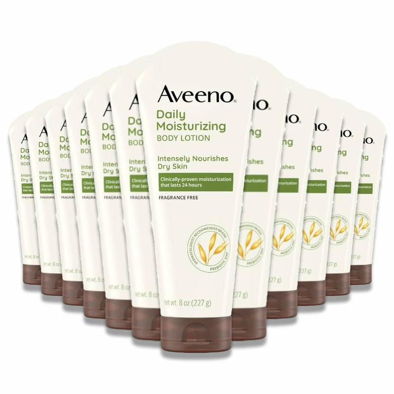 Aveeno - Daily Moisturising Lotion Nourishes Dry Skin - 8 Oz - 12 Pack. Looking to stock up on a trusted, dermatologist-recommended moisturizer? Aveeno's Daily Moisturizing Lotion is a customer favorite. This 12-pack offers a cost-effective solution for businesses seeking a high-quality, bulk supply of skincare products. Perfect for retail, spas, or hotels, this lotion provides deep hydration and is suitable for all skin types.