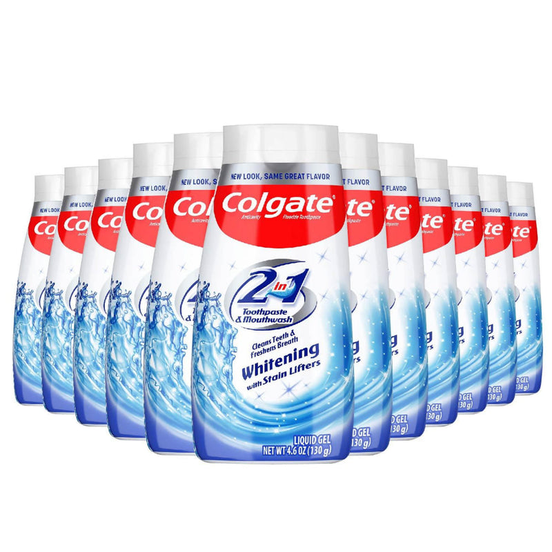 Colgate 2 in 1 Whitening W/ Stain Lifters Toothpaste Blue Gel & Mouthwash 4.6 Oz - 12 pack - Brighten your smile and freshen your breath with Colgate's 2-in-1 formula! This bulk pack of 12 offers a convenient and cost-effective solution for businesses, hotels, and dental offices.
