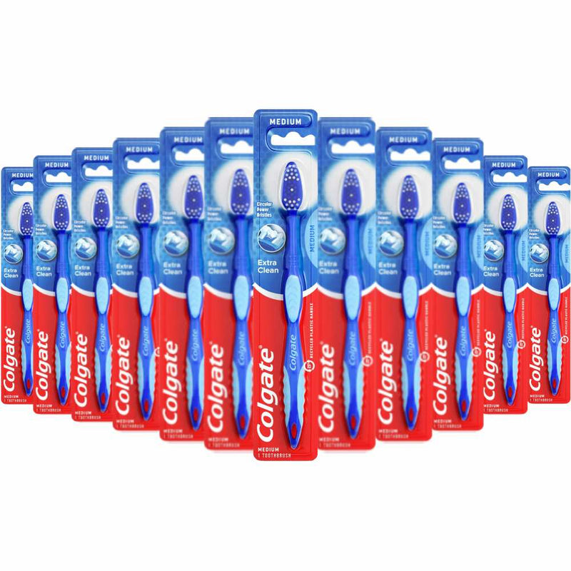 Provide your customers with a reliable and effective oral care staple with this wholesale 72-pack of the Colgate Extra Clean Full Head Toothbrush. Each individually packaged toothbrush is designed with a full head and circular power bristles to effectively remove plaque and food particles. The medium bristles are ideal for a thorough cleaning, while a built-in tongue and cheek cleaner helps to remove odor-causing bacteria. This bulk offering is a high-demand item for grocery stores, pharmacies, institutional buyers, and dental supply distributors.