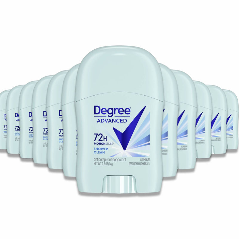 Degree Advanced, 72H MotionSense, Antiperspirant Deodorant, Shower Clean 0.5 Oz - 36 Pack - Travel Size. Stay protected and fresh all day long with Degree Advanced MotionSense Antiperspirant Deodorant. This innovative deodorant features MotionSense technology that releases freshness when you move, so you can stay confident even on the go. It also provides 72 hours of sweat and odor protection, so you can feel fresh and protected all day long.