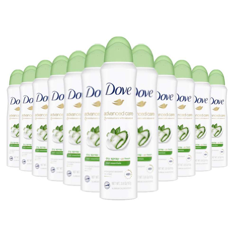 - Product: Dove Advanced Care 48h Dry Spray Antiperspirant Deodorant, Cool Essentials
