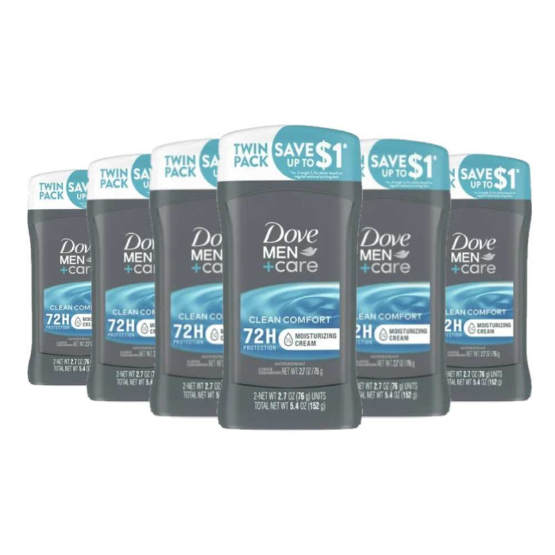 Dove - Men+Care Long Lasting Antiperspirant Deodorant Stick for Men, Clean Comfort, Twin Pack - 2.7 Oz - 6 Pack