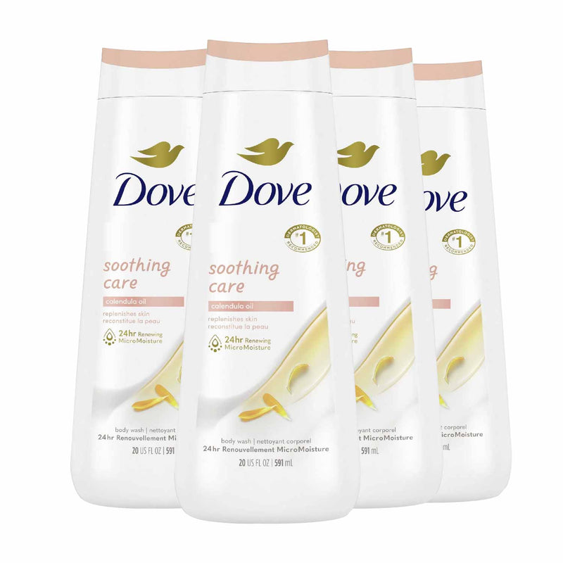 Dove - Soothing Care Body Wash with Calendula Infused Oils - 20 Oz - 4 Pack