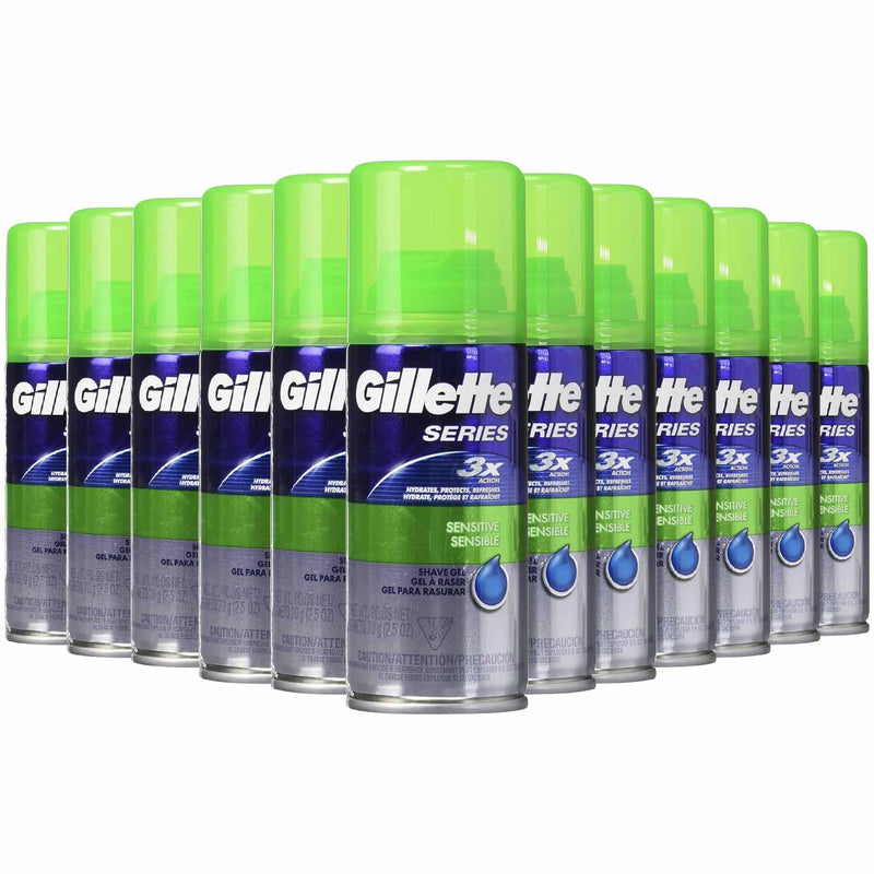 Wholesale 24-Pack: Gillette Series Shave Gel for Sensitive Skin - 2.5 oz each. Stock your shelves with this bulk offering of Gillette Series Shave Gel specifically formulated for sensitive skin. This 24-pack of 2.5 oz cans provides a gentle and lubricating lather that helps protect against irritation, cuts, and discomfort during shaving. Enriched with soothing ingredients, this shave gel ensures a smooth and comfortable shave for customers with sensitive skin. A must-have in any personal care aisle.