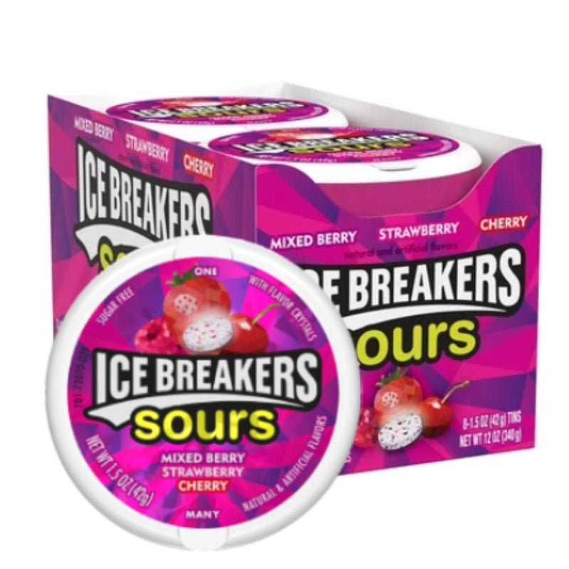 Ice Breakers Sours Sugar Free Mints, Mixed Berry, Strawberry, Cherry - 8 Ct. Experience the Sweet and Sour Sensation with Ice Breakers Sours Sugar Free Mints