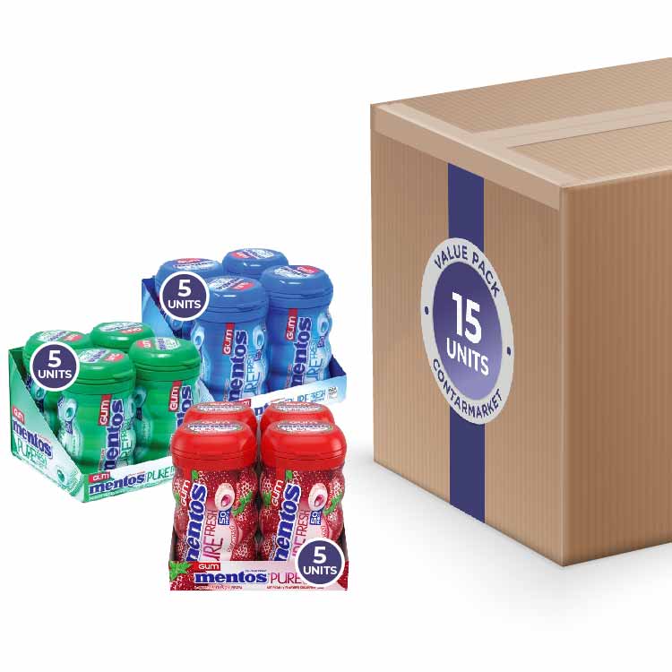 Mentos Pure Fresh Gum - 15 Pack (5 packs of 4 units each flavor)