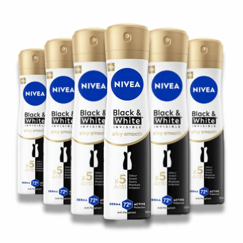 Nivea Black & White Invisible Anti-Perspirant 6-Pack (150ml) Wholesale | No White Marks, No Yellow Stains