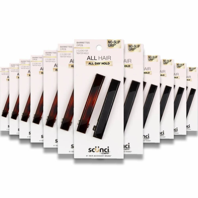 Secure your hair in style with Scunci No-Slip Grip Auto Clasp Barrettes. Each pack includes 2 color-varied barrettes with a firm, all-day hold. With 48 packs per set, you'll always have a sleek and reliable option on hand for everyday use or special occasions.