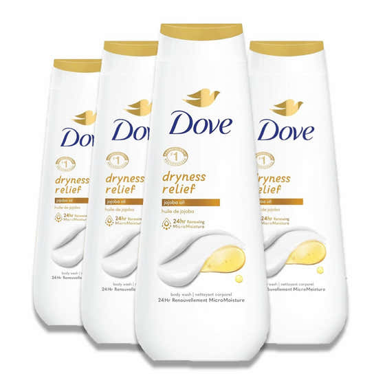 Dove - Body Wash Dryness Relief, Gentle Skin Cleanser, Jojoba Oil - 20 Oz - 4 Pack