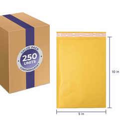 Kraft 3/16'' Bubble Lining Mailers, Paper Pressure 70 lb, Size: 5''x10'' Inches - 250 Pack