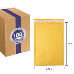 Kraft 3/16'' Bubble Lining Mailers, Paper Pressure 70 lb, Size: 7.25''x12'' Inches - 100 Pack