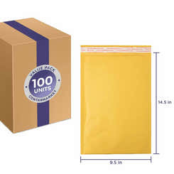Kraft 3/16'' Bubble Lining Mailers, Paper Pressure 70 lb, Size: 9.5''x14.5'' Inches - 100 Pack