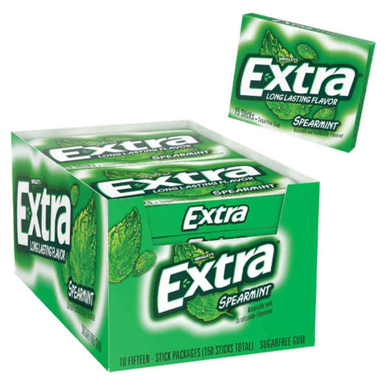 Extra - Sugar Free Gum, Spearmint - 10 Pack, (15 Sticks Each)