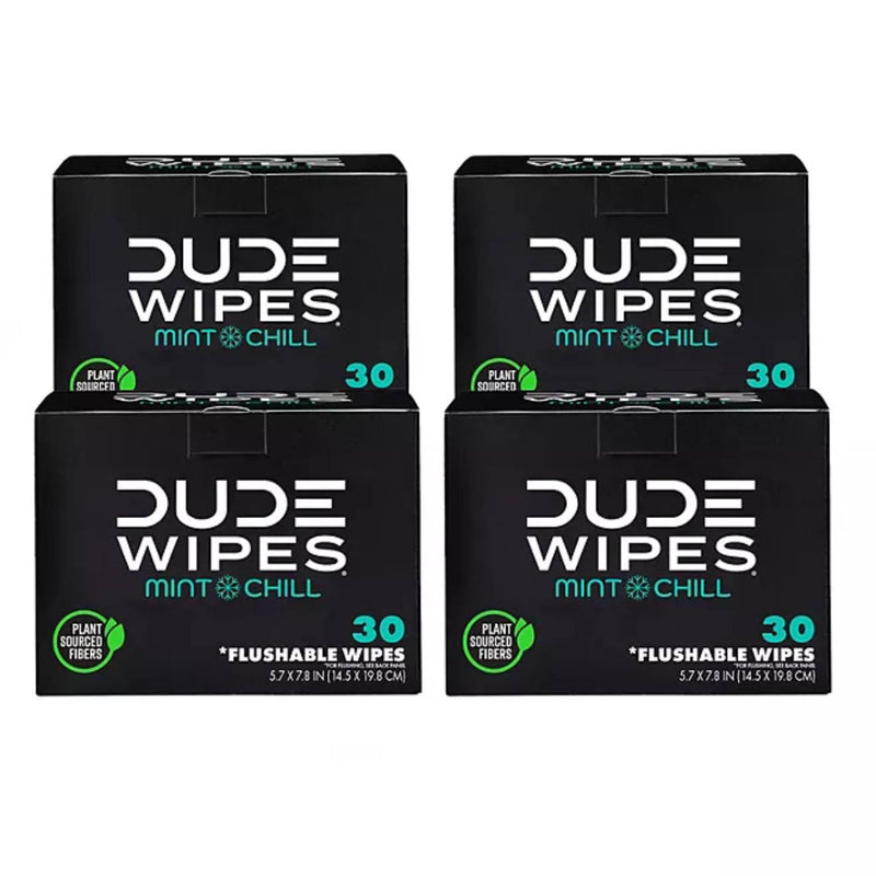 DUDE WIPES XL On-the-Go Flushable Wipes, Mint Chill - 4 Ct - 120 wipes