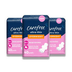 Carefree –Feminine Pads Ultra Thin Overnight Pads with Wings 40 Ct – 3 Pack