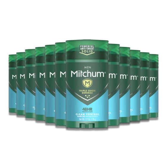 Mitchum - Antiperspirant Stick Triple Odor Defense Invisible Solid Clean Control 2.7 Oz - 12 Pack