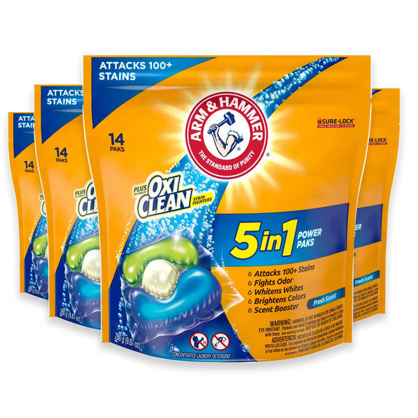 Arm & Hammer Plus OxiClean 5-in-1 Power Paks Laundry Detergent – 14 Count – 4 Pack