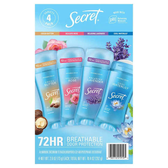 Secret Fresh Invisible Solid Antiperspirant Deodorant, Variety Pack - 2.6 Oz - 4 Pack