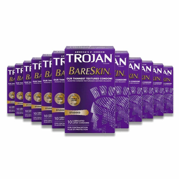 Trojan - Studded Bareskin Lubricated Condoms - 10 Count - 12 Pack