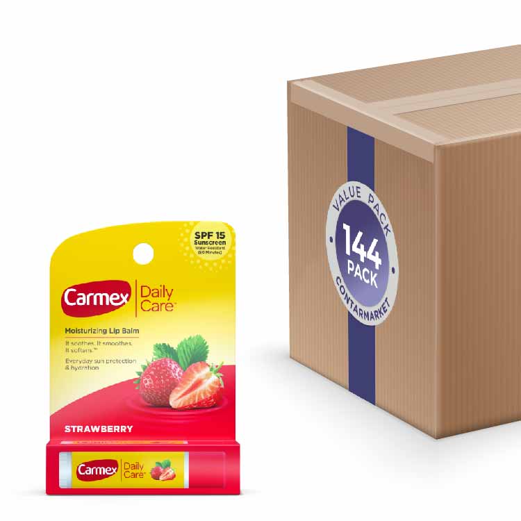 Carmex - Daily Care, Moisturizing Lip Balm, Strawberry, SPF 15 - 0.15 Oz - 144 Pack