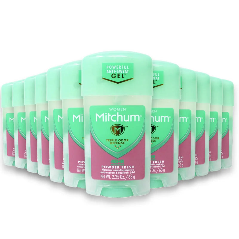 Mitchum Women Gel Antiperspirant Deodorant, Powder Fresh provides maximum sweat and odor protection with a refreshing Powder Fresh scent. This invisible gel deodorant goes on clear and leaves no white marks on skin or clothes. It is dermatologist-tested and is alcohol-free, so it is gentle on even the most sensitive skin. This 24-pack bundle of 2.25 oz sticks is perfect for wholesalers and retailers looking to offer their customers a high-demand, trusted personal care product known for its effectiveness and refreshing scent.