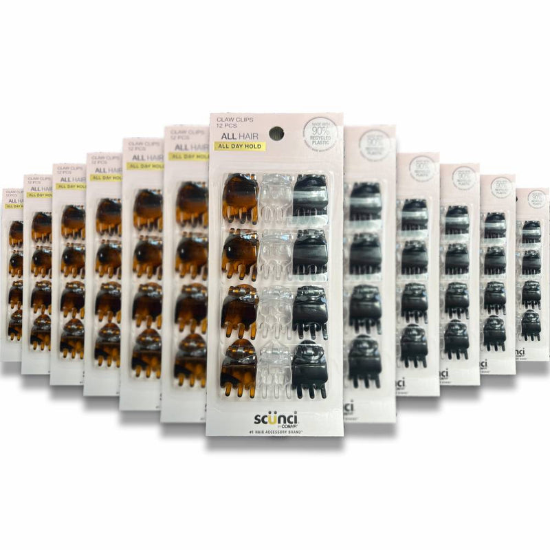 Add a pop of style and secure hold to your hair with Scunci Mini Hair Jaw Clips. With 12 assorted clips per pack and 48 packs included, these mini-sized clips are perfect for sectioning, styling, or adding flair to any hairdo—whether at home or on the go.